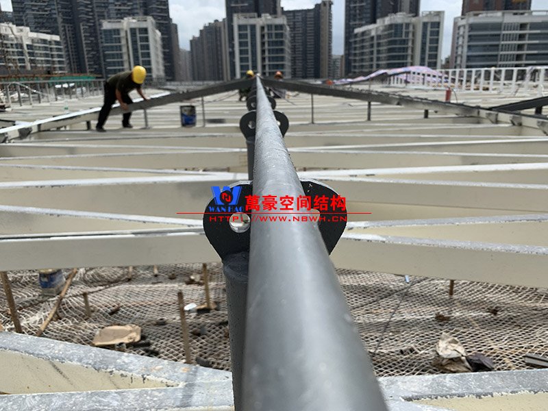 紅山六九七九商業(yè)中心項目幕墻工程Ⅱ標段膜結(jié)構(gòu)鋼結(jié)構(gòu)工程位于廣東省深圳市龍華區(qū),此工程用鋼量300噸,膜結(jié)構(gòu)展開面積5000平米,由寧波萬豪空間結(jié)構(gòu)工程有限公司承建。