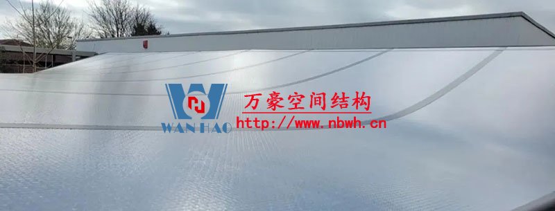 STFE膜材是法拉利技術(shù)織物工業(yè)集團(tuán)新近推出的新型膜材,高強(qiáng)度可以大面積張拉,100%防水,透光率達(dá)到50%以上,可以代替玻璃使用。