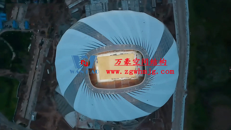 重慶龍興足球場項目位于重慶市兩江新區(qū),占地面積約303畝,總建筑面積約17萬平方米。足球場鋼屋蓋平面呈橢圓形,南北投影長283米、東西寬252米,屋面最大高度59.5米。該項目部分屋面材料選用進口高自潔ETFE膜材, 膜結(jié)構(gòu)展開面積合計30000平米。