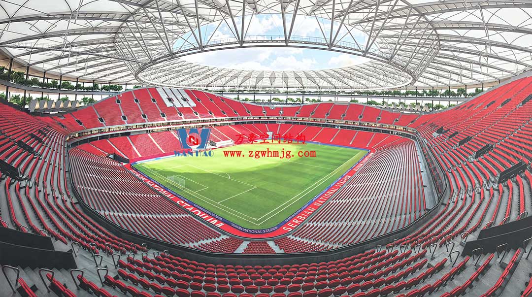 塞爾維亞國家足球場項目位于貝爾格萊德市西南部,該項目PTFE網(wǎng)格覆膜+PTFE膜展開面積40000平方米。