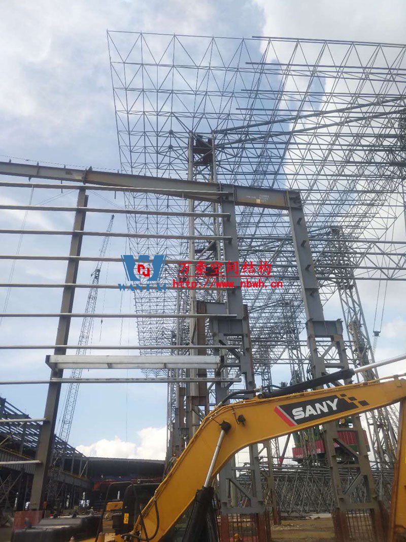 目前,該工程的鋼結構安裝即將完成,準備進入膜結構安裝階段。
