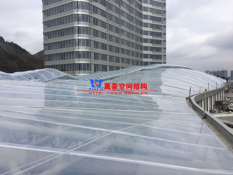 遵義高鐵新城天幕膜結(jié)構(gòu)工程用鋼量500噸,膜展開面積8000平米。