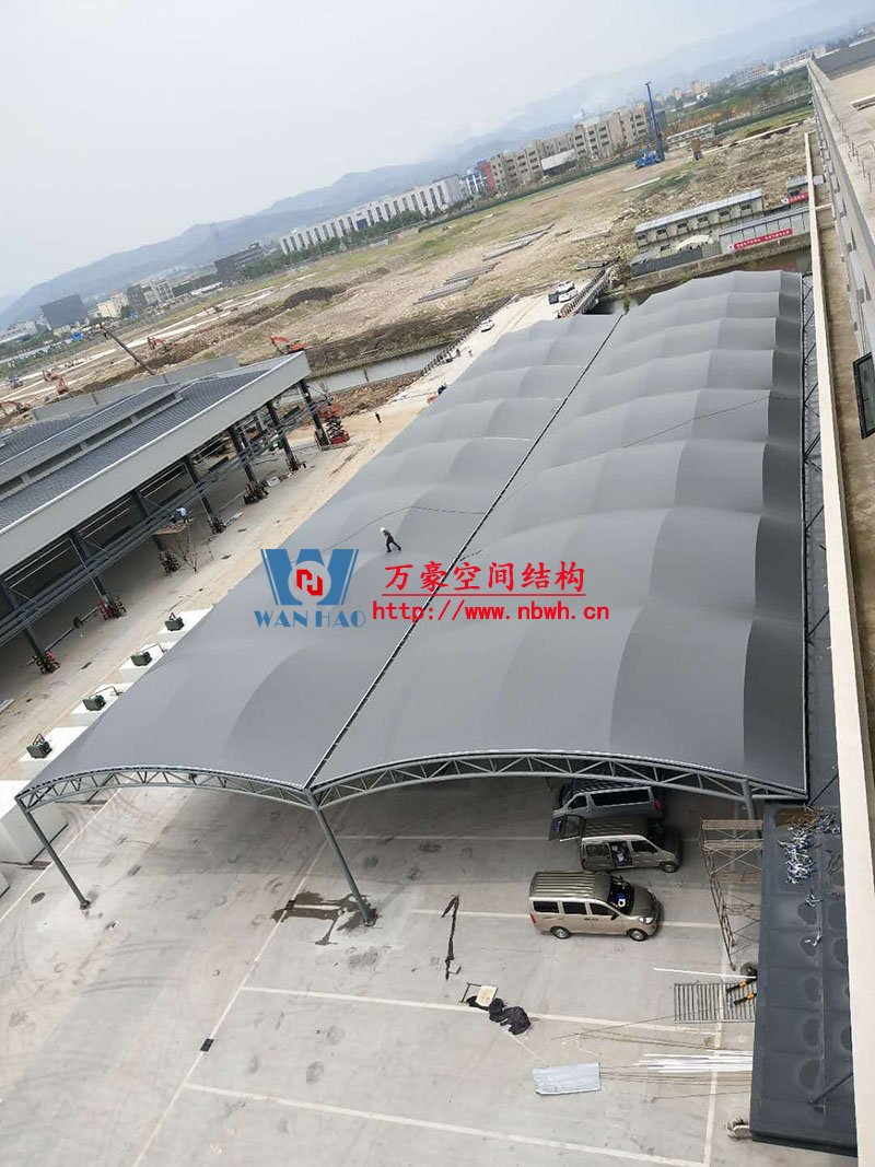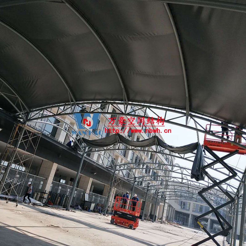 奉化方橋農(nóng)副鋼膜結(jié)構(gòu)雨棚工程位于浙江省寧波市奉化市內(nèi),此工程用鋼量100噸,膜結(jié)構(gòu)展開面積3500平米,由寧波萬豪空間結(jié)構(gòu)工程有限公司承建。