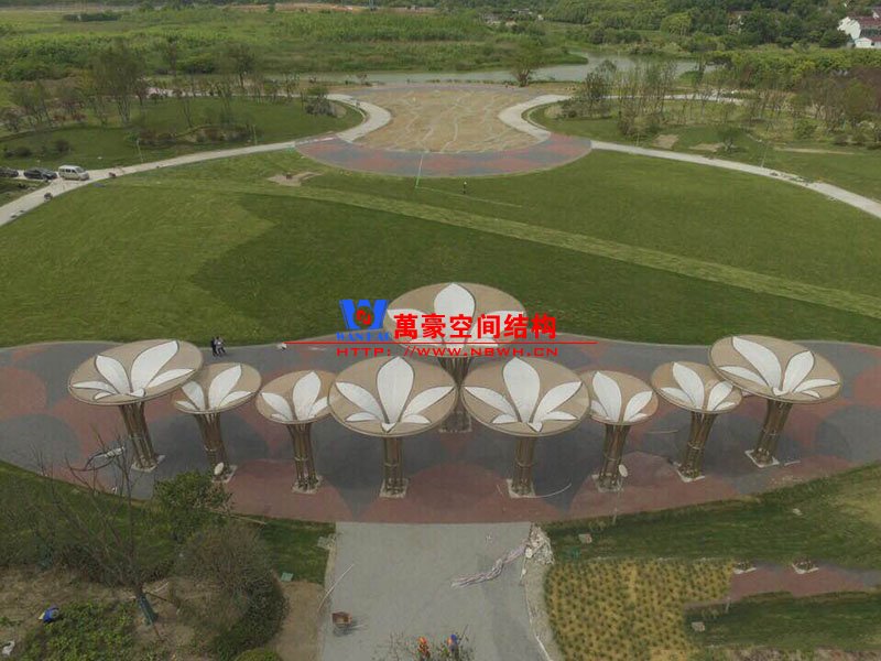 該項(xiàng)目膜結(jié)構(gòu)共有9個(gè)單體結(jié)構(gòu),分別由1個(gè)大型花朵、4個(gè)中型花朵、4個(gè)小型花朵組成,膜結(jié)構(gòu)建筑面積約為400平方米。