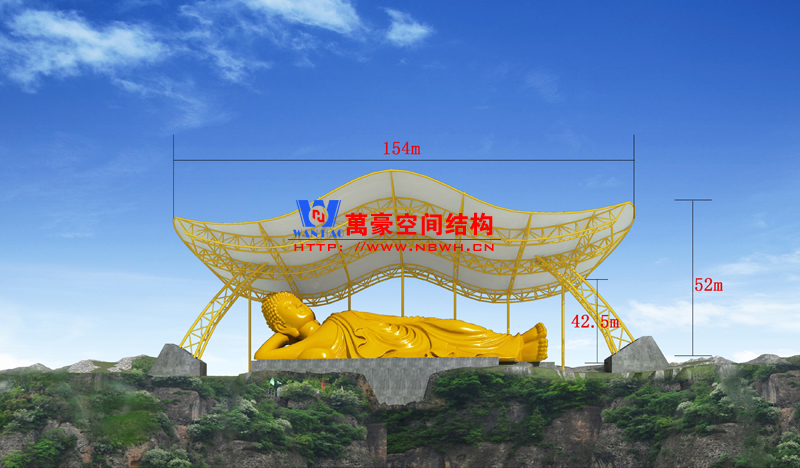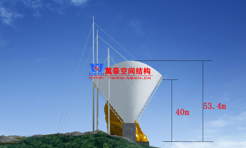 橫店釋伽牟尼大佛膜結(jié)構(gòu)雨棚位于橫店影視城內(nèi),主要是給大佛加一個(gè)雨棚,起到遮陽擋雨的作用,讓釋伽牟尼佛像減少自然環(huán)境的侵蝕。以上就是大佛膜結(jié)構(gòu)雨棚的效果圖,大家可以看一下。