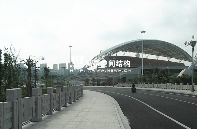 嘉興體育館位于嘉興市中環(huán)南路南側(cè),昌盛路西側(cè),總建筑面積約4.81公頃,其中膜結(jié)構(gòu)看臺建筑總面積約12580平方米,看臺總體結(jié)構(gòu)為骨架與拉索混合支撐式膜結(jié)構(gòu)。