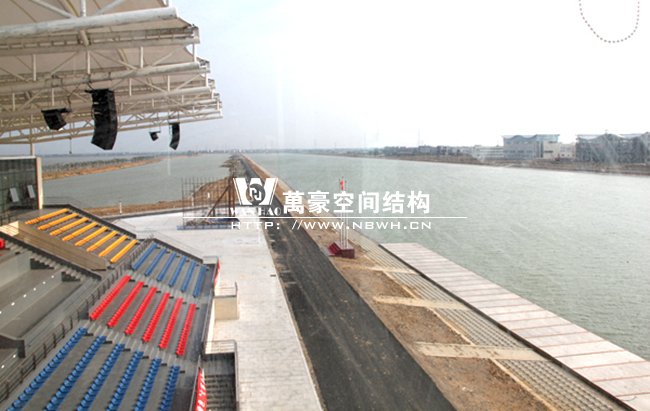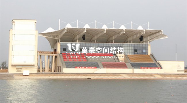 南昌瑤湖國(guó)際水上運(yùn)動(dòng)中心膜結(jié)構(gòu)看臺(tái)整體工程呈骨架式單挑懸臂梁結(jié)構(gòu),縱向跨度達(dá)到20米,總長(zhǎng)度約52米,每檔間距為8.5米,充分體了膜結(jié)構(gòu)具有大跨度,易施工的結(jié)構(gòu)特點(diǎn),同時(shí)它的經(jīng)濟(jì)實(shí)用性和視覺(jué)美觀性也得到了完美的體現(xiàn)。