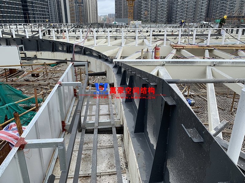 紅山六九七九商業(yè)中心項目幕墻工程Ⅱ標段膜結(jié)構(gòu)鋼結(jié)構(gòu)工程位于廣東省深圳市龍華區(qū),此工程用鋼量300噸,膜結(jié)構(gòu)展開面積5000平米,由寧波萬豪空間結(jié)構(gòu)工程有限公司承建。