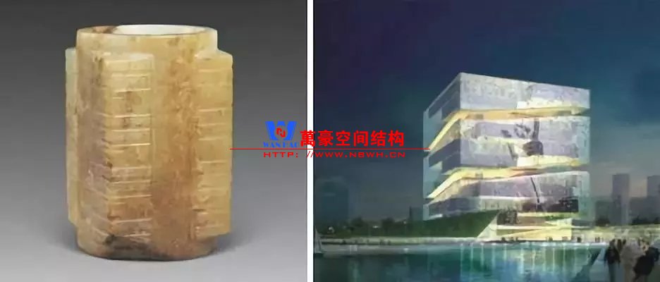 杭州奧體博覽城的綜合訓(xùn)練館,建筑外形則采用了代表杭州歷史的良渚文化禮器——玉琮。建成后,這將是銀河系最大的“玉琮”建筑。