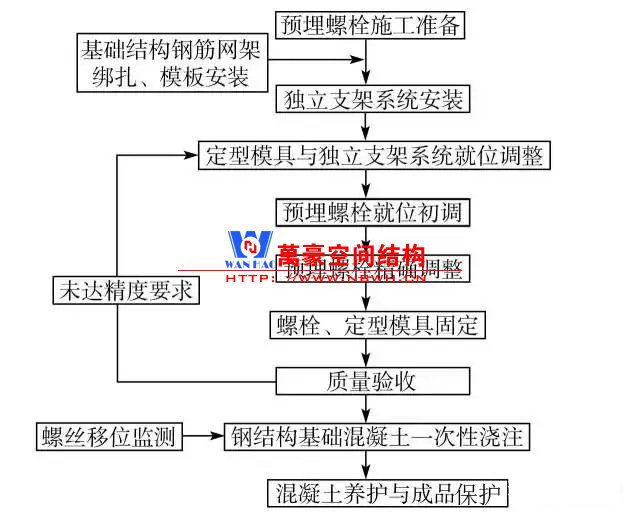 鋼結(jié)構(gòu)預埋螺栓的工藝流程圖如圖 1 所示。