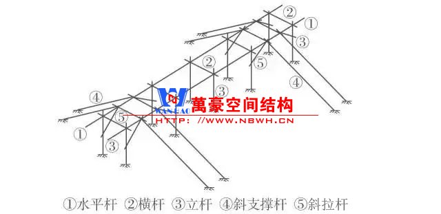 ( 3 )充分利用搭設腳手架常用的 Φ 48 mm 鋼管腳手桿和扣件周轉(zhuǎn)材料 ,通用性強 ,費用低 ,可大量節(jié)省工程投入。