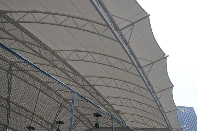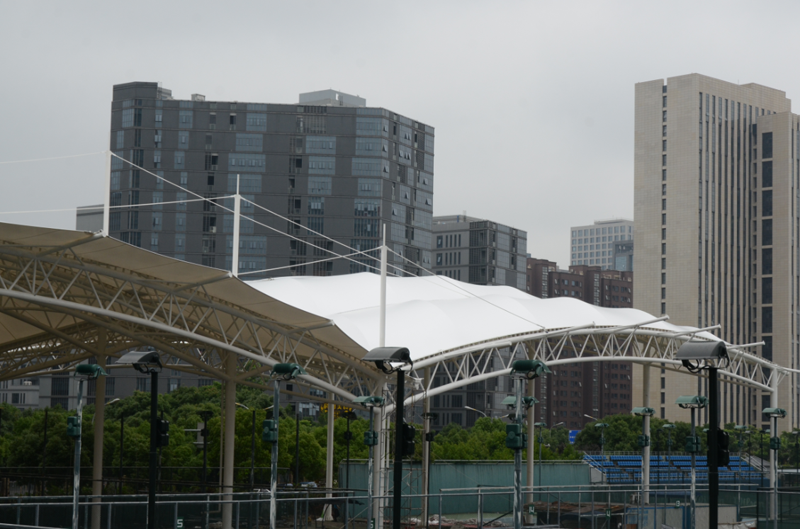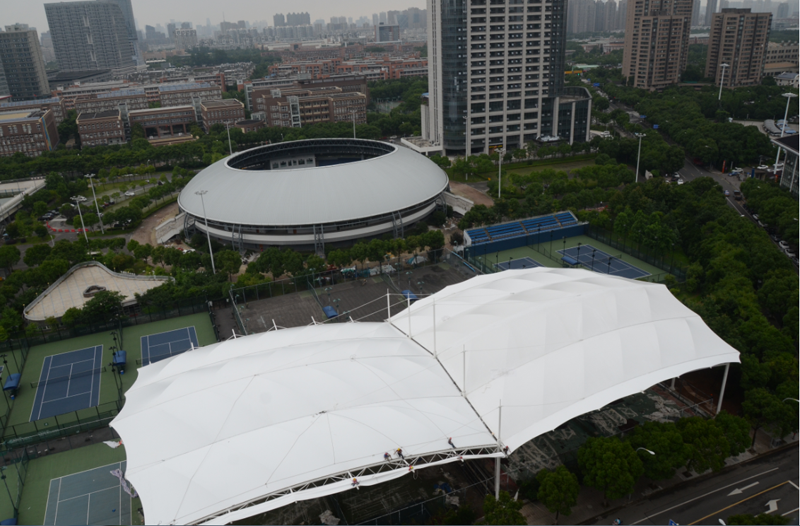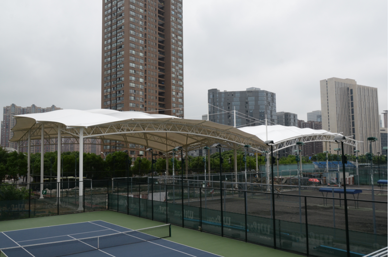 鄞州網(wǎng)球場膜結(jié)構(gòu)工程位于寧波市鄞州區(qū)首南街道文華路199號【寧波(鄞州)網(wǎng)球中心內(nèi)】,膜結(jié)構(gòu)球場展開面積約3700平方米。項目為單片網(wǎng)球場罩篷。采用骨架式結(jié)構(gòu)體系,集休閑、運動、標(biāo)志性建筑于一體。鋼結(jié)構(gòu)采用Q235B高頻焊管,膜材采用進口建筑膜材,顏色為白色。