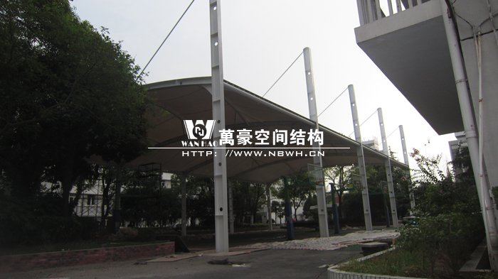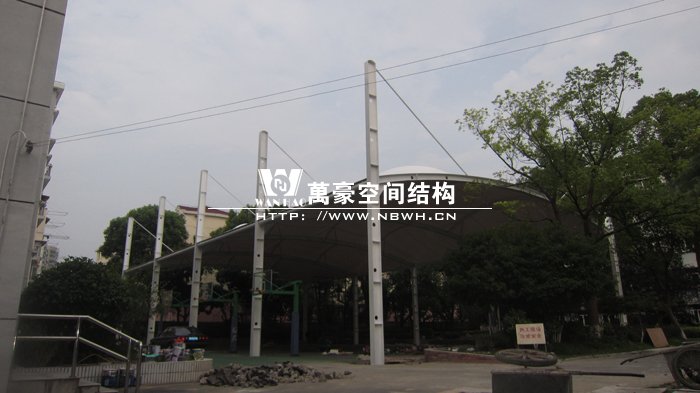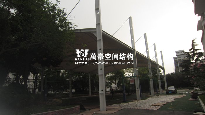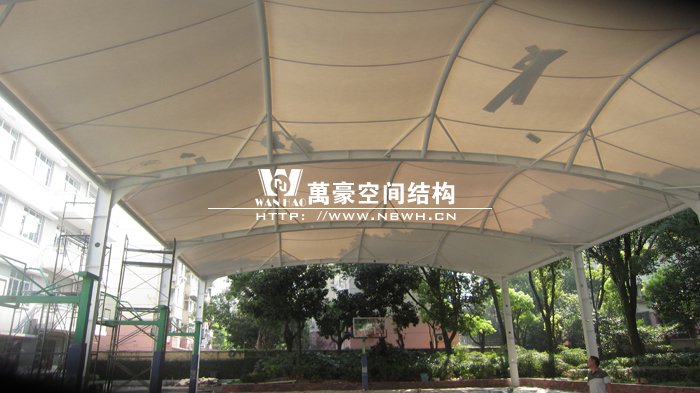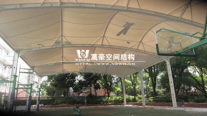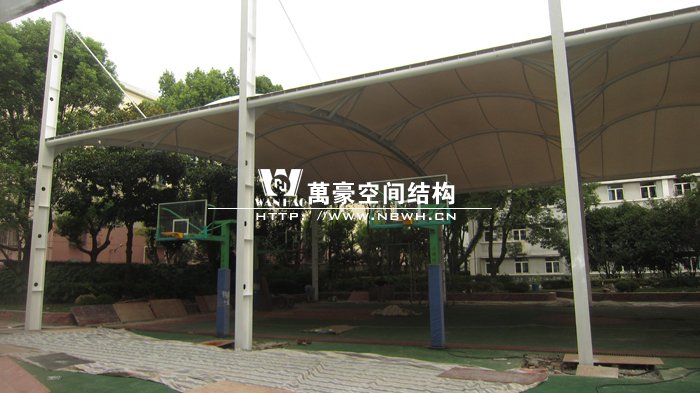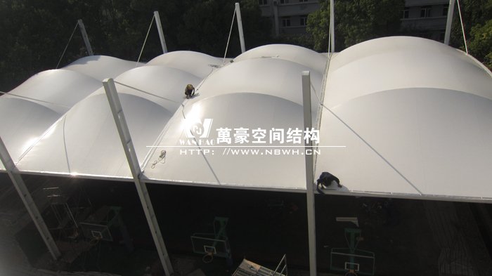 本項(xiàng)目位于上海閔行區(qū)第五中學(xué)內(nèi),球場采用膜結(jié)構(gòu)蓋頂。