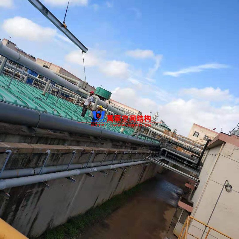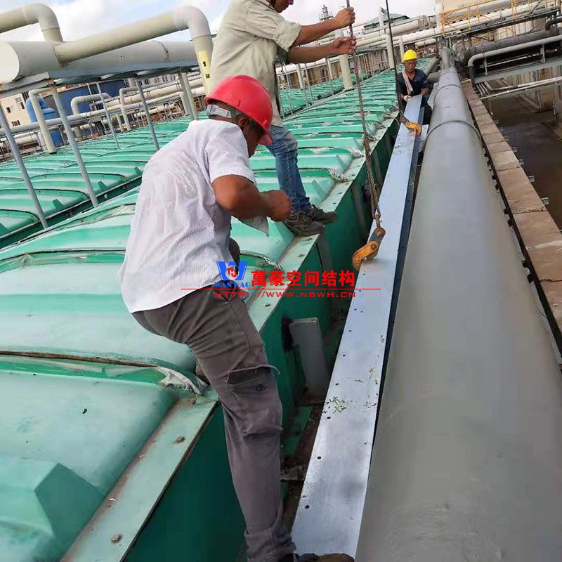 浙江東邦藥業(yè)有限公司污水池(好氧池)加蓋密閉膜結(jié)構(gòu)工程位于浙江省臺(tái)州市臨海市東邦藥業(yè)有限公司內(nèi),此工程用鋼量50噸,膜結(jié)構(gòu)展開面積2500平米,由寧波萬豪空間結(jié)構(gòu)工程有限公司承建。