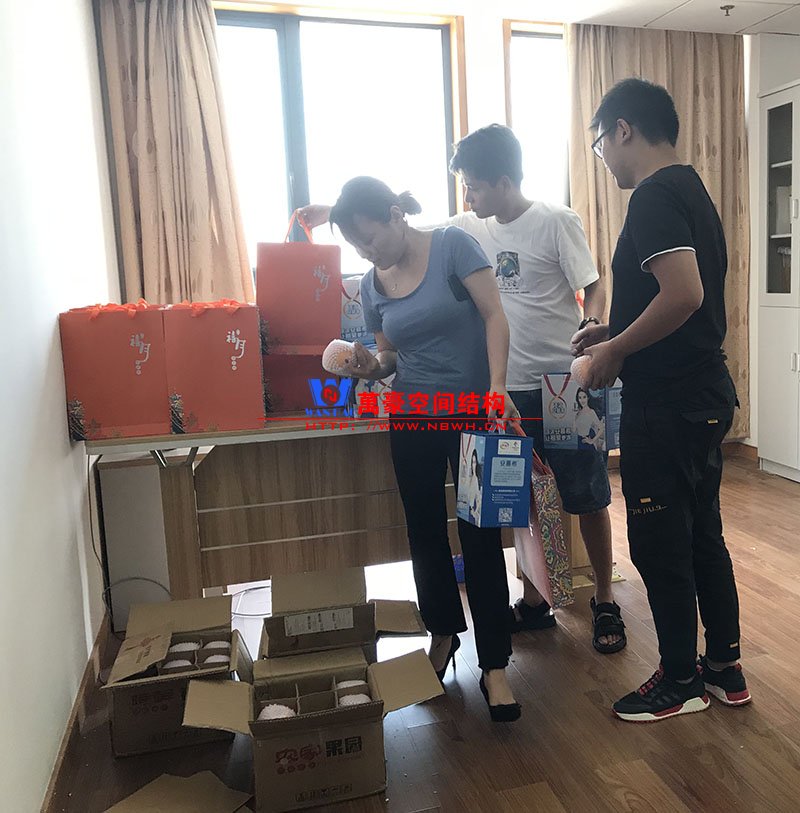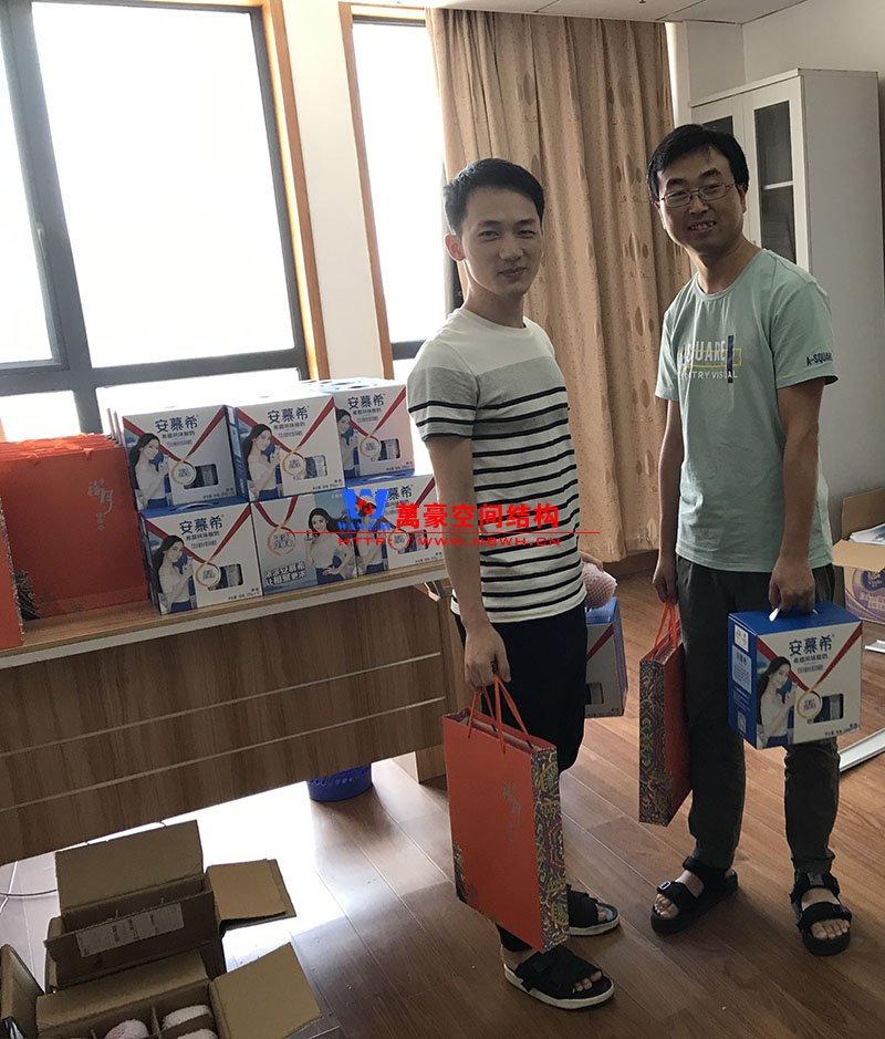 我們?nèi)f豪空間結(jié)構(gòu)中秋的福利是一盒精致的月餅禮盒,外加一箱安慕希酸奶和大蘋果哦。你們中秋節(jié)都發(fā)什么了呢?