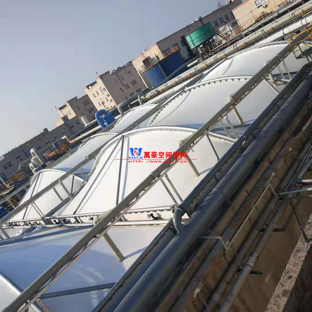 浙江東邦藥業(yè)有限公司污水池(好氧池)加蓋密閉膜結(jié)構(gòu)工程位于浙江省臺州市臨海市東邦藥業(yè)有限公司內(nèi),此工程用鋼量50噸,膜結(jié)構(gòu)展開面積2500平米,由寧波萬豪空間結(jié)構(gòu)工程有限公司承建。 目前該工程已完美竣工,大家可以欣賞一下它的風采。?