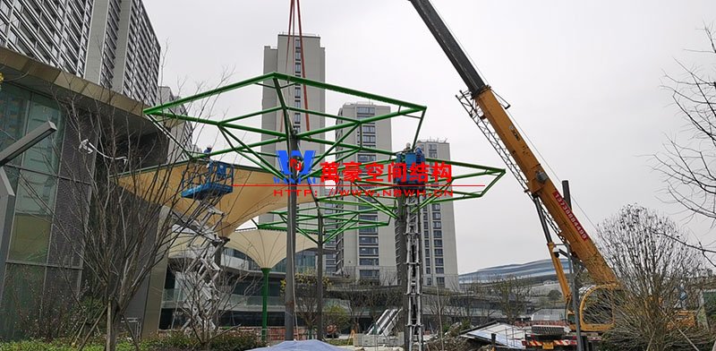 五鄉(xiāng)地鐵站傘狀PTFE膜結(jié)構(gòu)工程鋼結(jié)構(gòu)施工中