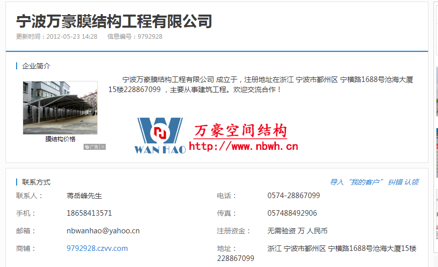 寧波萬豪空間結構工程有限公司關于信息被山寨的澄清公告