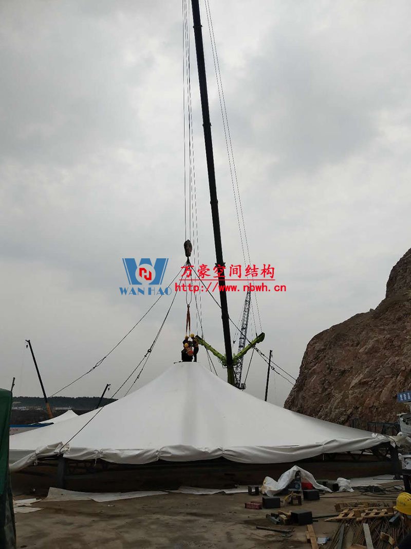 南京園博園穹蓋式膜結(jié)構(gòu)棚項目位于南京市江寧區(qū)湯山風(fēng)景區(qū),該工程由寧波萬豪空間結(jié)構(gòu)工程有限公司承建。 目前,第一個保溫棚已經(jīng)吊裝到位,接下來第二、第三個棚按順序拼裝和安裝。