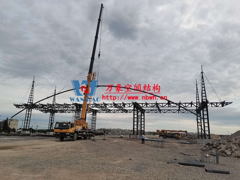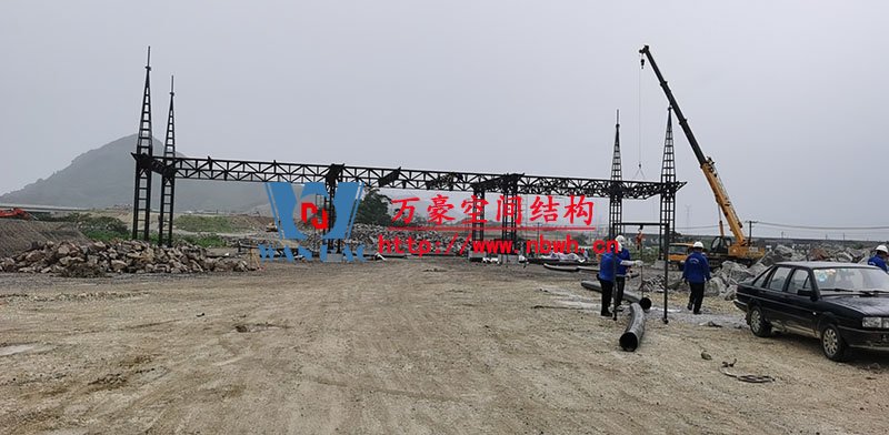 紹興西高速收費站頂棚工程用鋼量80噸,由寧波萬豪空間結(jié)構(gòu)工程有限公司加工和安裝。 目前,項目鋼結(jié)構(gòu)安裝完成。 期待整個工程的完工,來領(lǐng)略它別致的風采。