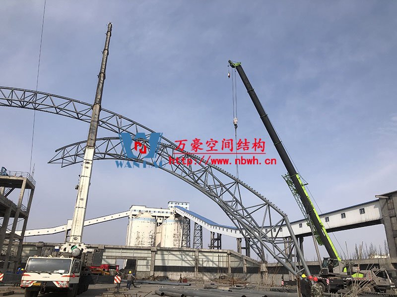 內(nèi)蒙能源長(zhǎng)城五礦選煤廠鋼骨架膜棚建設(shè)項(xiàng)目鋼結(jié)構(gòu)施工中