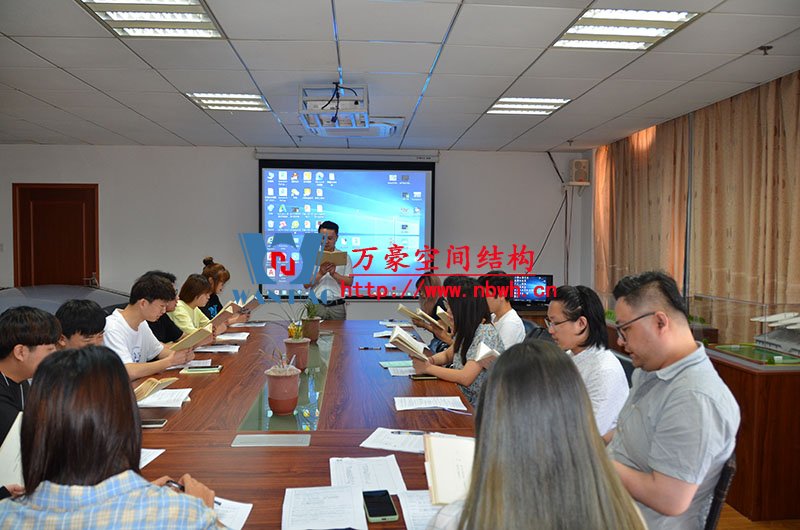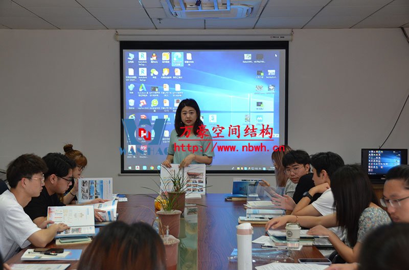 然后,我們的銷(xiāo)售主管教新員工們學(xué)習(xí)了公司晨會(huì)流程以及膜結(jié)構(gòu)建設(shè)工程項(xiàng)目流程。