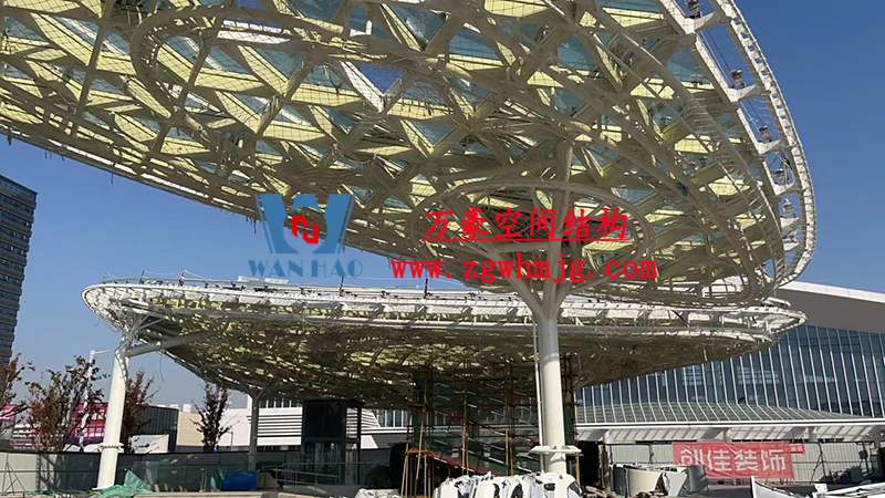 滬通鐵路張家港站地方配套工程-站前西側(cè)旅客集散區(qū)蝴蝶造型天幕工程擬建結(jié)構(gòu)為蘇州張家港高鐵站站前廣場蝴蝶造型雙曲面殼體膜結(jié)構(gòu),共分為大、小翅膀四部分。