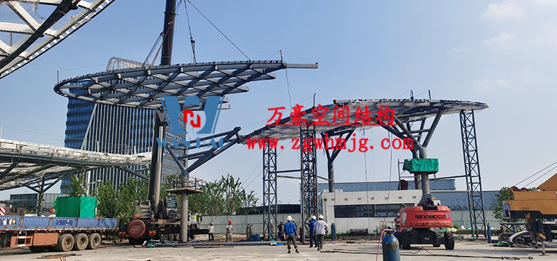 滬通鐵路張家港站地方配套工程-站前西側(cè)旅客集散區(qū)蝴蝶造型天幕工程擬建結(jié)構(gòu)為蘇州張家港高鐵站站前廣場蝴蝶造型雙曲面殼體膜結(jié)構(gòu),共分為大、小翅膀四部分。