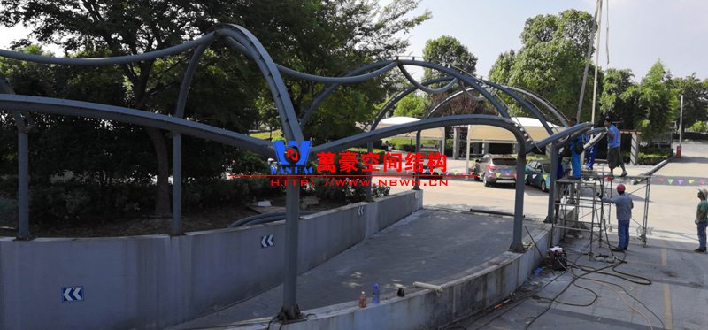 嘉善客運中心膜結(jié)構(gòu)雨棚項目施工中